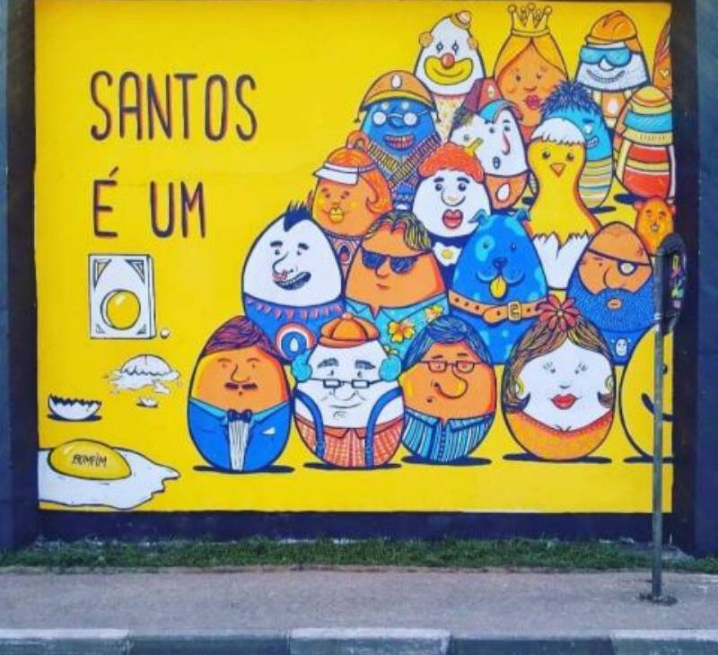 Muitas dessas gírias, longe de serem meramente linguísticas, foram transformadas em obras de arte. Um exemplo notável é o lema “Santos é um ovo”, que inspirou uma série de pinturas de ovos na cidade, desenvolvida pelo publicitário Érico Bomfim do projeto Muretas na Cidade 2017. Essas obras, agora icônicas entre moradores e visitantes, não apenas celebram a linguagem local, mas também destacam a criatividade e o espírito comunitário.