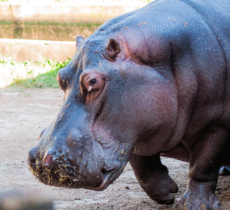 Completando quinze anos de casa, o hipopótamo do Parque Ecológico de São Vicente é destaque nos olhares de visitantes e funcionários