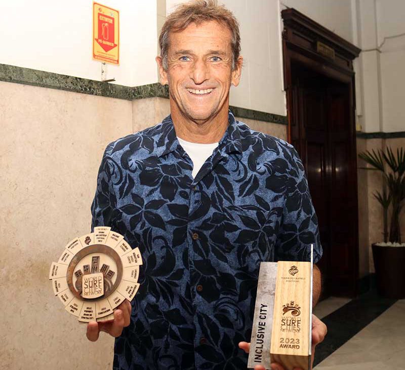 O reconhecimento é fruto das experiências de sucesso obtidas pela Escola de Surfe Adaptado (que funciona no Posto 3, no Gonzaga) e pelas turmas do público de 50+ da Escola Radical de Surfe (Posto 2, Pompeia). O troféu foi entregue ao coordenador das duas escolas, Cisco Araña, em cerimônia realizada em Viana do Castelo, em Portugal.